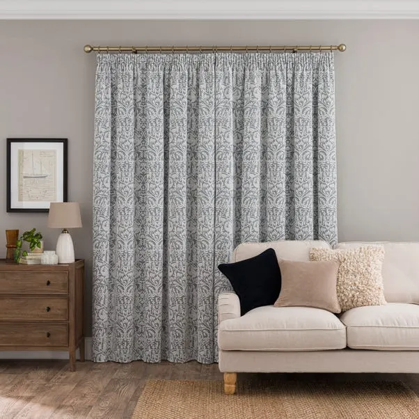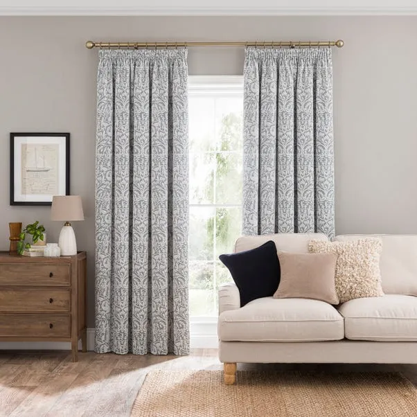 Classic living room curtains in soft chenille jacquard with a traditional pencil pleat header. The thermal coating helps retain heat and improve insulation, while the elegant textured fabric creates a warm, sophisticated, and timeless interior setting.