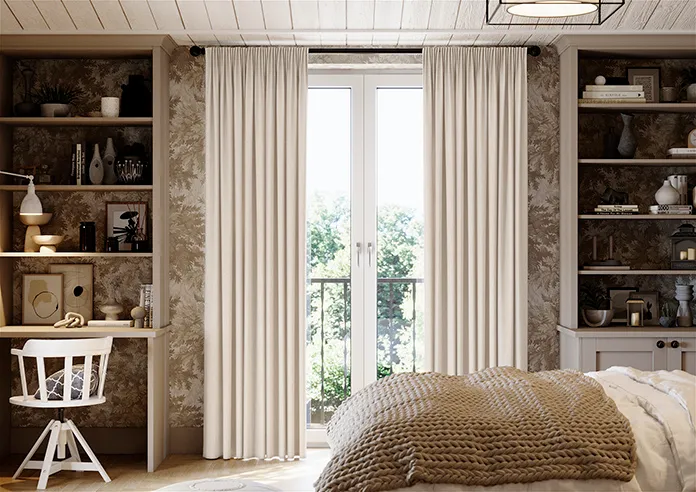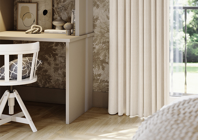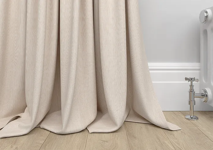 Made-to-measure Wave Curtains in Atina oatmeal blackout polyester, offering excellent light-blocking with a lightweight, modern drape. Unlined for a sleek finish, with pattern-matched pairs for a clean, seamless, and perfectly tailored window look.