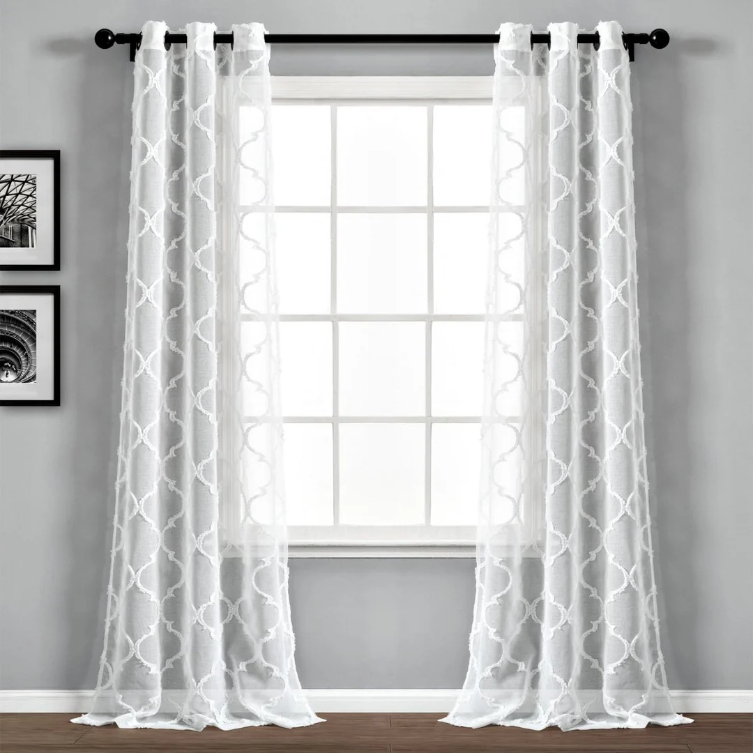 Refresh your home with these stylish Avon Trellis Eyelet Curtains. Featuring a modern geometric pattern, they add a fresh look to any room. The easy-to-use eyelet top slides perfectly onto your pole. Fully lined for a better drape and added privacy.