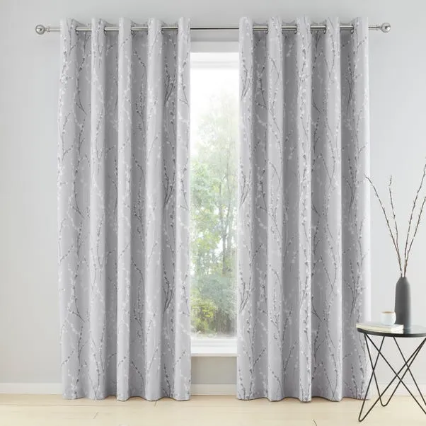 Elegant blackout curtains with a finely detailed floral design and polycotton fabric. The eyelet header allows easy hanging, while the blackout lining reduces sunlight and enhances privacy, adding a timeless, feminine touch to bedrooms of any style.