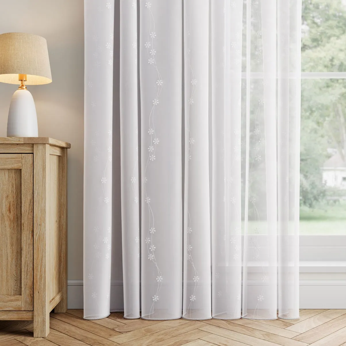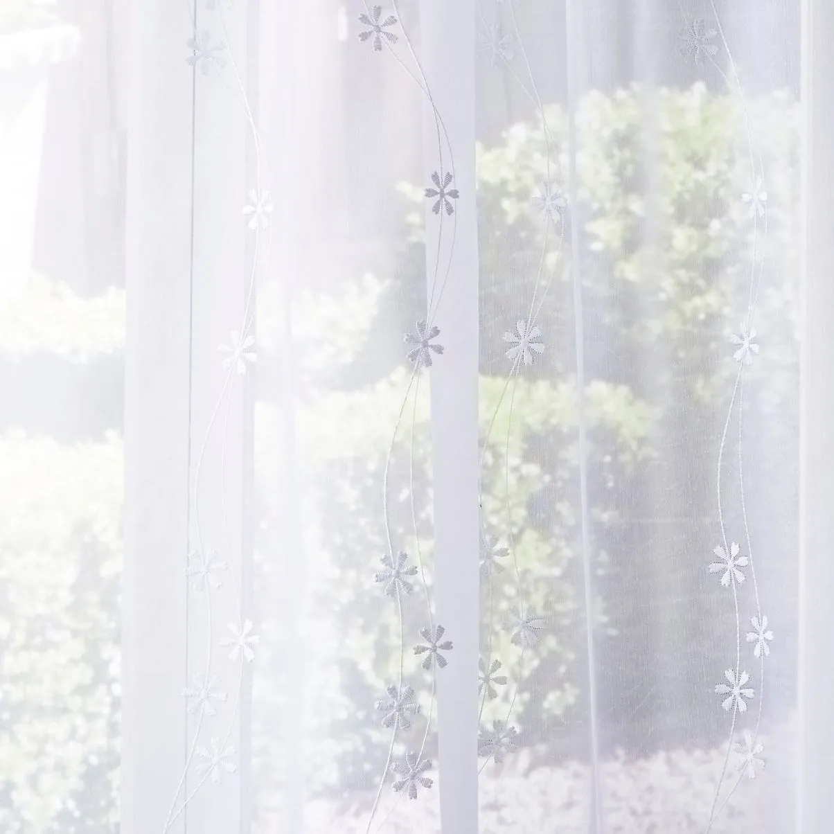 Lightweight linen blend sheer curtain with slot top header for easy hanging. Soft voile fabric gently filters sunlight while providing privacy, adding an airy, elegant, and natural touch to any room. Machine washable for easy care and upkeep.