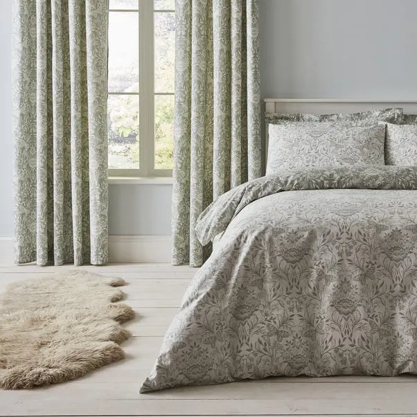 Arts and Crafts inspired blackout curtains crafted from 100% cotton for a timeless and elegant look. The eyelet header offers smooth hanging, while the blackout lining enhances privacy and light control, making them ideal for a calm and restful bedroom setting.
