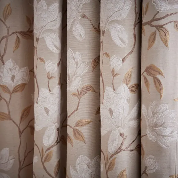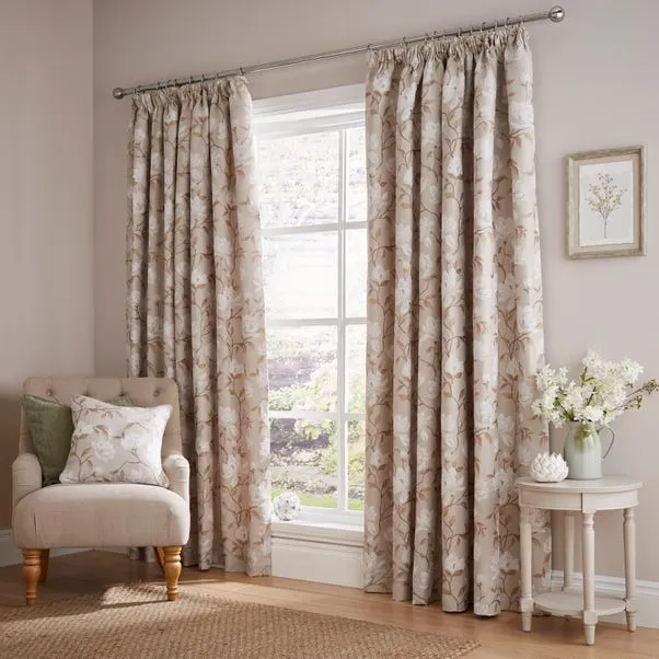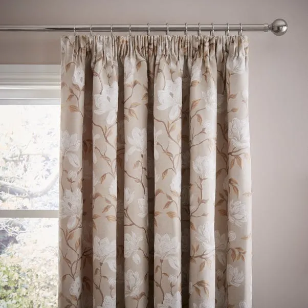 Magnolia Floral Living Room Curtains Pencil Pleat