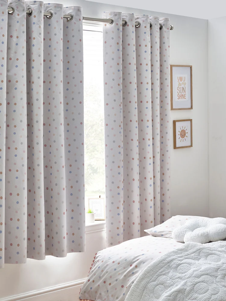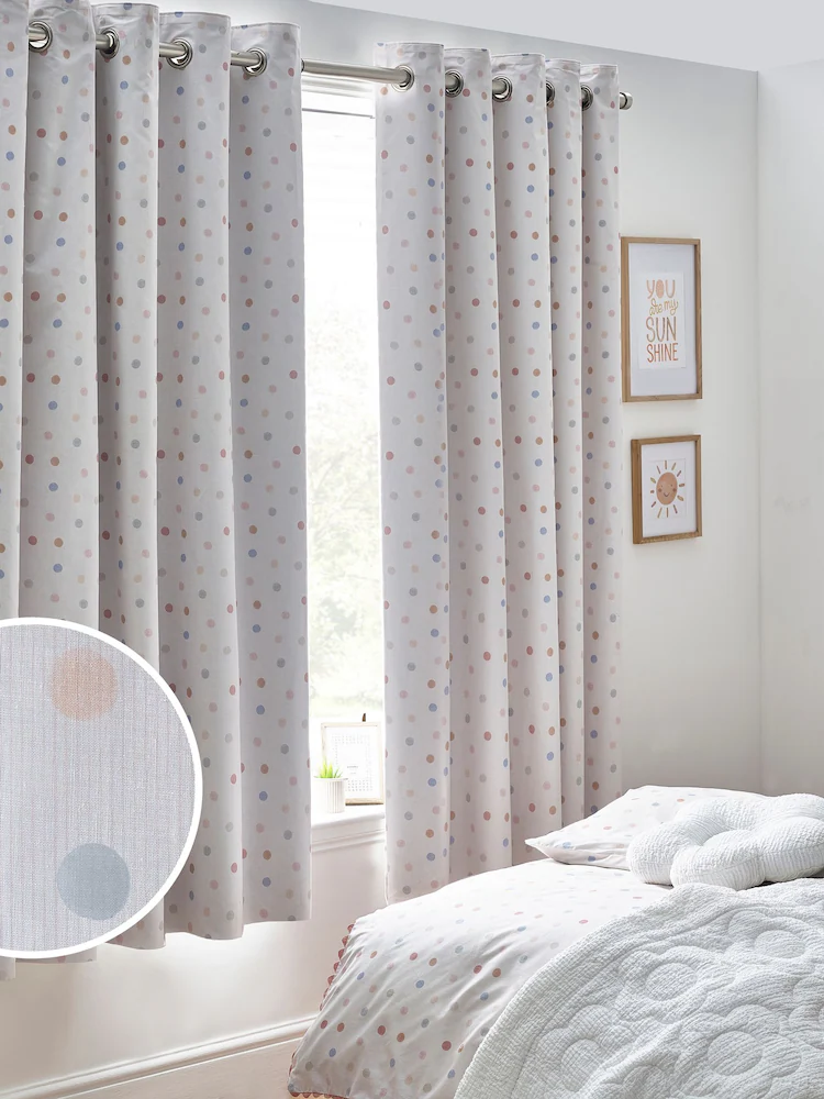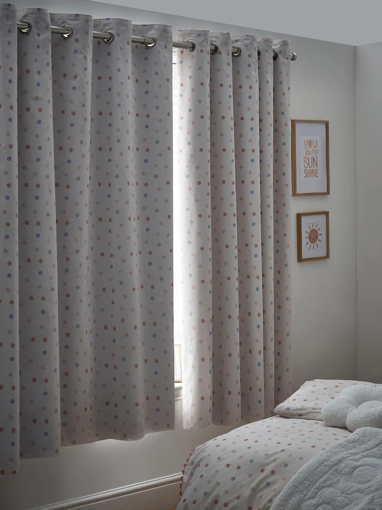 Pink Scandi Spot Eyelet Blackout Curtains