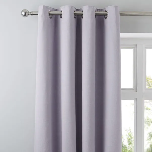 Modern eyelet curtains with a subtle textured print and blackout lining to reduce external light. The eyelet header allows easy hanging and smooth draping, making these Tyla curtains a stylish, practical, and comfortable addition to any room.
