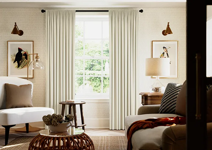 Elegant made-to-measure Wave Curtains in soft chevron cream, crafted from 100% polyester with full lining for improved insulation, durability, and a refined drape. Pattern-matched pairs ensure a seamless, tailored finish for a sophisticated interior.
